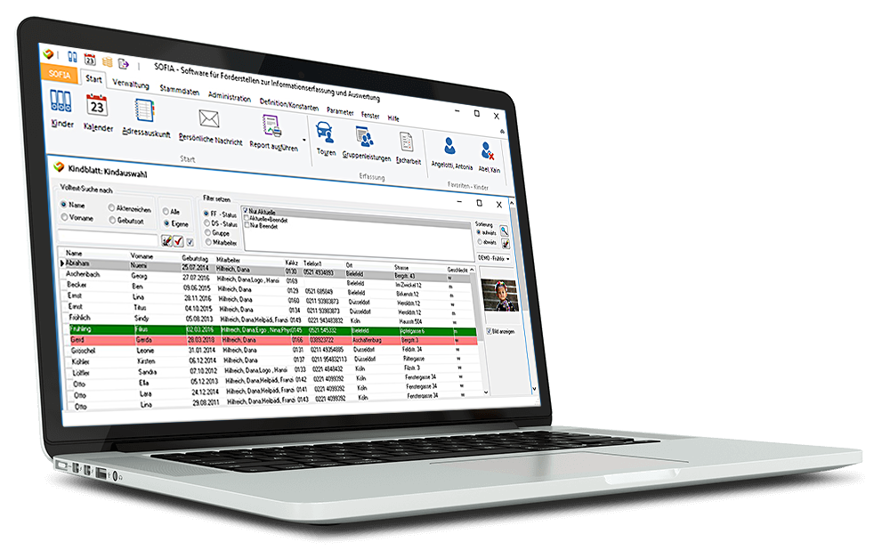 Durch die strukturierte Erfassung Ihrer Kind-/Klientdaten und Leistungen kann Ihnen SOFIA bei der Dokumentation und der Erstellung von Berichten schnell weiterhelfen. SOFIA bietet Ihnen zahlreiche Möglichkeiten für eine einfache Abrechnung und individuelle Statistiken.